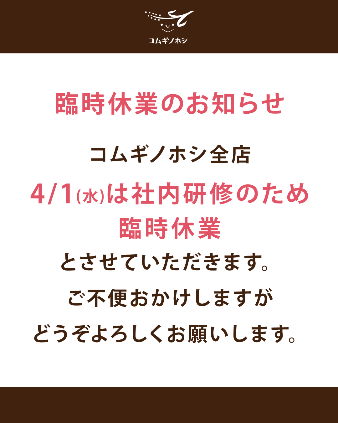 2026/4/1 臨時休業のお知らせ
